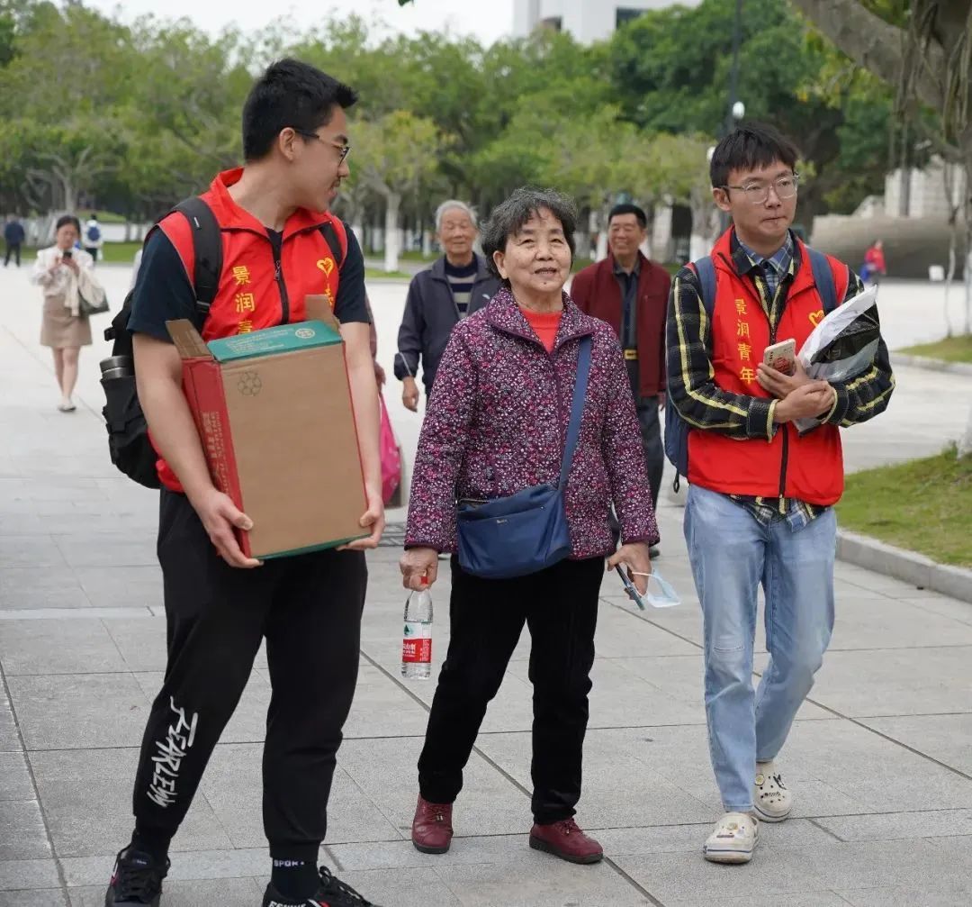 下午,校友们前往厦门大学海韵园参观学院办学空间,看望学院老教师。在景润铜像前,校友们回忆了陈景润学长的卓越风采以及与陈景润学长相处的点点滴滴,并向学生志愿者讲述了老一辈人在厦大的故事。
