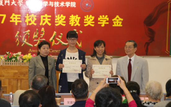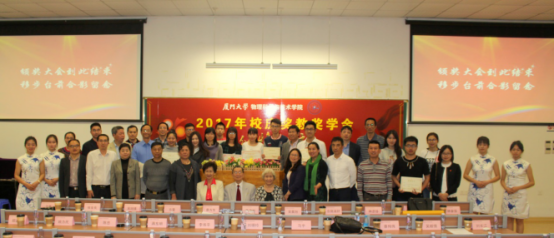 出席本次颁奖大会的校友有:原机电系1943级系友邵建寅先生及夫人,厦门大学明培体育馆、翔安校区佘明培游泳馆捐赠者佘施淑好女士,原机电系主任朱家忻先生的外孙女方萱女士,蔡文种奖学金捐资人76级物理系系友蔡方生先生,78级物理系系友蒋东明先生,86级物理系系友马宇先生、刘珊玲女士,98级物理系系友刘长江先生。嘉宾有:中国科学院上海天文台党委书记、副台长侯金良先生,中国科学院上海天文台人事教育处高级主管王慧女士。出席此次颁奖大会还有学院党委书记林奋强老师、院长吴晨旭老师等全体院系领导以及电子科学与技术学院党委书记吴国瑛、原物理与机电工程学院院长陈金灿老师。