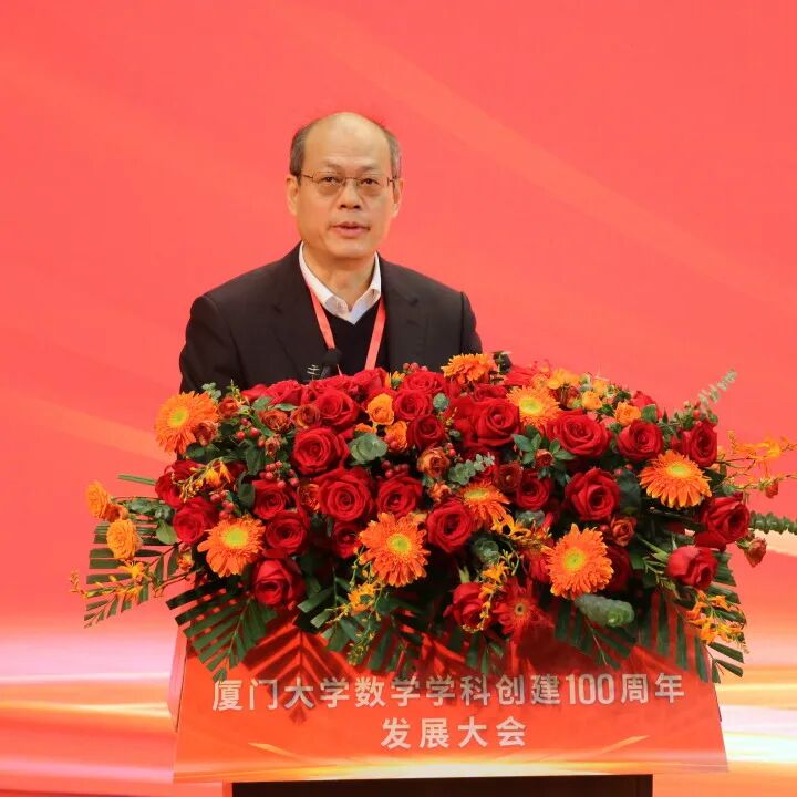 他指出数学等基础学科是厦门大学的立校之基和办学特色。1923年学校创建算学系,招收第一位本科生,100年来,数学学科秉持“自强不息,止于至善”的校训精神,与时代同呼吸、与民族共命运,吸引了姜立夫、杨武之、江泽涵、张希陆、方德植、李文清、张鸣镛等大师大家来校执教兴学,培养了以柯召院士、陈景润院士、林群院士、陈纯院士等为代表的一批杰出校友,为推动国家科技进步和区域经济社会发展贡献了重要力量。