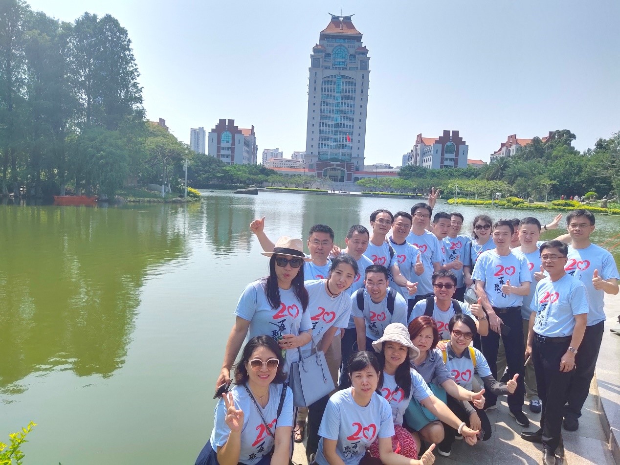 5月11日中午,同学们整齐身穿印有“20年再聚首”字样的纪念T恤,重返厦大新区,重温当年学习、生活过的地方。向教室里望去,仿佛还是当年那一张张年轻的面孔;通往宿舍的楼梯上,行色匆匆的背影似曾相识;食堂里的饭菜还是熟悉、久违的味道。
