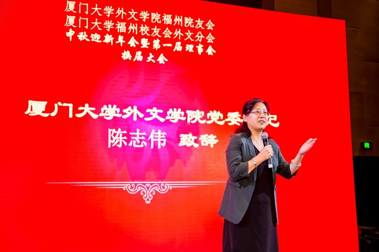 9月22日,厦门大学福州校友会外文分会(外文学院福州院友会,以下简称)2019年会暨换届大会在福州融侨皇冠假日酒店成功举办。在榕的外文学院校友及嘉宾140多人参加了本次盛会。厦门大学外文学院党委书记陈志伟、院长陈菁,孔子学院办公室主任毛通文,外文学院副院长徐琪、教授苏欲晓,外文学院全球院友联合会会长朱德贞,厦门大学福州校友会副会长兼秘书长余少谦、副会长兼女校友分会会长林冰及外文学院兄弟院友会代表莅临指导。