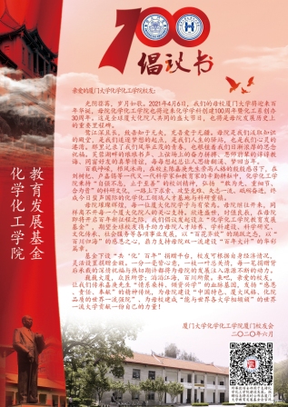 会上发布了《厦门大学化学化工学院百年庆典公告(第一号)》《化学化工学院教育发展基金倡议书》,并举行了化学化工学院教育发展基金启动仪式。