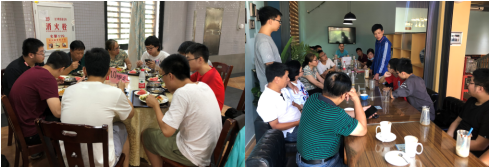 座谈会结束后,陈毅辉、林敏、周金梅、曹晓宇带着大家前往勤业食堂就餐,重温“厦大餐饮,家的味道”;之后来到学院EA咖啡厅,回味当年学习时的“每天正能量”。