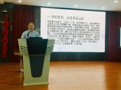 首先,人文学院院长朱菁教授对两位杰出系友重回哲学系表示热烈地欢迎,感谢他们为师弟师妹们带来精彩的报告和分享。朱院长认为促进系友之间建立起更加密切的联系,有助于在校同学培养服务社会的意识。