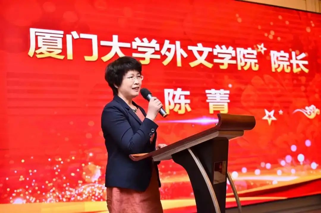 陈菁院长代表学院致辞。她从自身在外文学院学习和工作长达30多年的经历谈起,深情回顾美好温馨的校园生活。她特别强调,今天是属于外文人的家庭聚会,四代同堂,其乐融融。厦大外文人不仅清新脱俗、勇于探索、善于交流和沟通,而且“富有情怀”。外文院友们对母院的牵挂、深情、厚望都深深感动了她,每一个外文人都以母校为荣、以母院为自豪。随后,她简要介绍了学院的近况以及在人才培养、学科建设等方面所取得的成绩,感谢院友们在各行各业努力拼搏,为学院增光添彩,并希望院友们继续关心、支持学院的各项工作,助力学院在教学科研人才培养等方面更上一层楼。