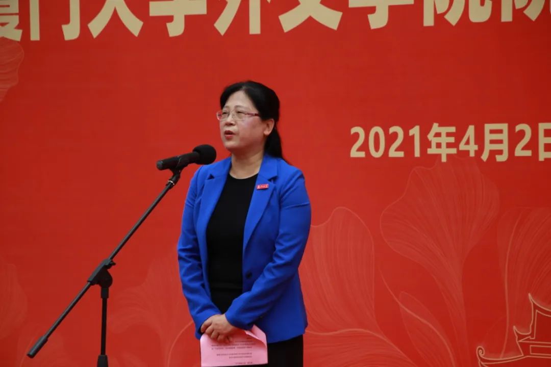 朱德贞女士、84级院友代表韦忠和、85级院友代表朱群分别致辞。他们在致辞中深情回顾了学生时代的厦大记忆、外文岁月,表达了对母校、母院栽培的感激之情和对厦大、外文学院未来的美好祝愿。院友们心系母校、捐资助学,更纷纷表示五湖四海外文学子要守望相助、砥砺前行,共创百年新辉煌。