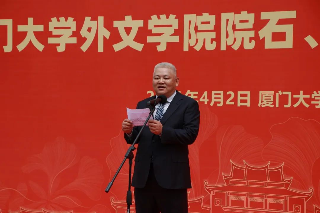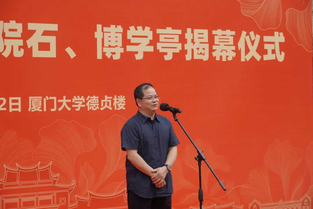 4月2日上午,厦门大学外文学院院石、博学亭揭幕仪式在德贞楼前隆重举行。厦门大学校友总会副理事长詹心丽,校资产处副处长崔庆炜,校基层党建工作联络员黄定基,外文学院党委书记陈志伟、院长陈菁、原院长杨信彰,厦门大学外文学院全球院友会会长、德屹资本董事长、77级院友朱德贞,84级、85级返校院友,学院党政领导及在校生代表出席了仪式,共襄盛举。