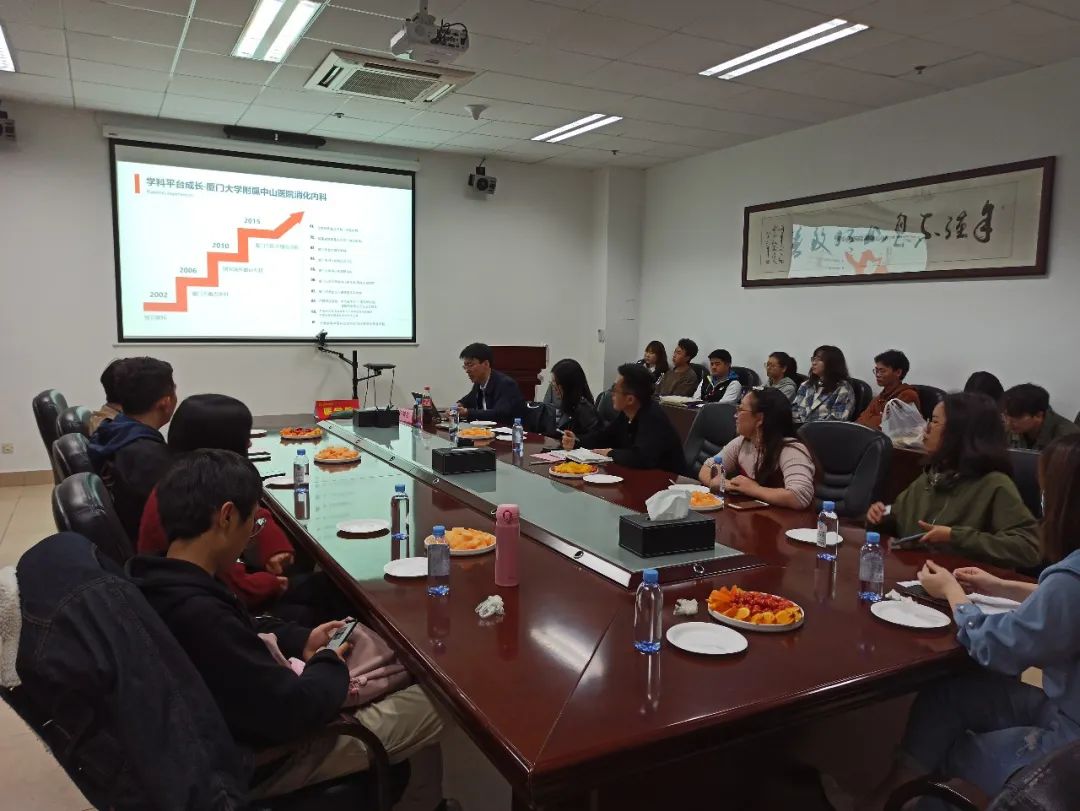3月25日晚,在医学院爱礼楼103会议室举办了医学院校庆系列活动之一——“医路先锋”优秀校友沙龙(第一期),活动邀请了医学院2015届博士优秀毕业生代表、厦大附属中山医院消化内科副主任许鸿志担任主讲嘉宾。许鸿志分别从校园学习生活、科研成长道路等方面分享了他在厦门大学医学院的成长经历与人生体验。他勉励学弟学妹“一分锻炼,一分收获”,努力做到知行合一,做一名有历史使命感的医学生。