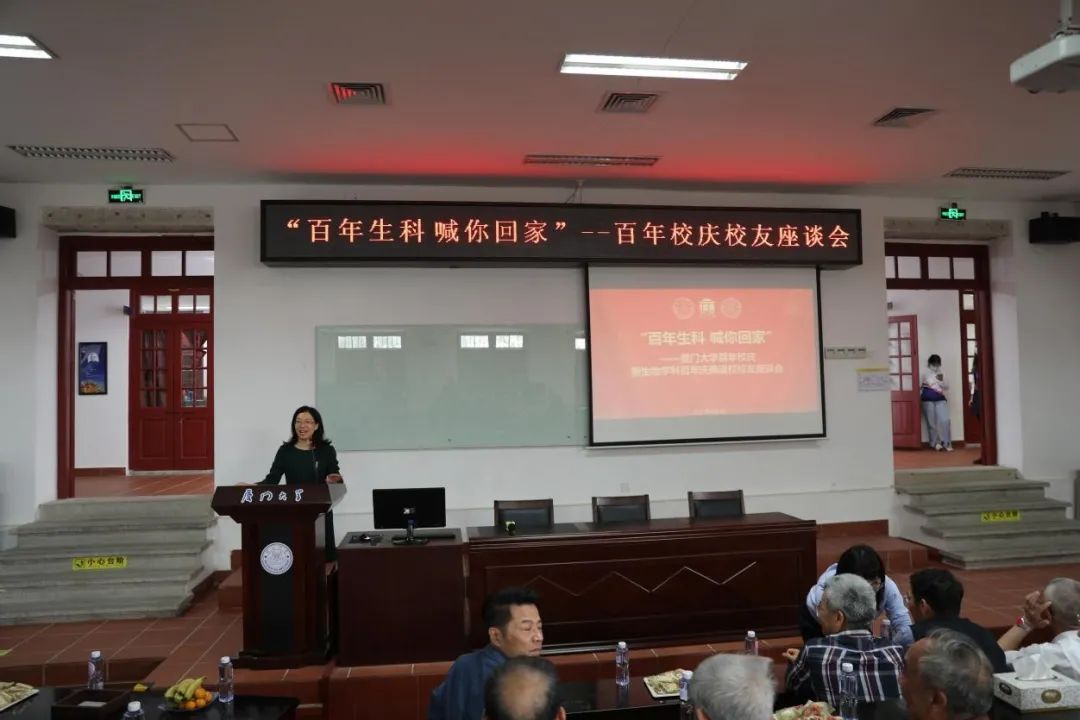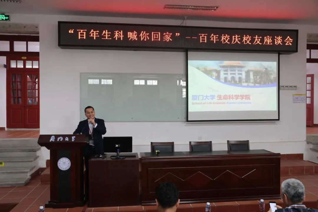 4月5日上午,厦门大学生命科学学院近百名校友齐聚思明校区成义楼114教室,隆重举行“百年生科 喊你回家”厦门大学百年校庆暨生物学科百年庆典返校校友座谈会。生命科学学院党委书记左正宏、副院长李博安、邓贤明、副书记葛学凤、院长助理谢忠、离退休教师代表、厦门大学厦门校友会生科分会秘书长彭振庆等参加了会议,座谈会在欢声笑语中进行,现场洋溢着浓浓的温馨氛围。