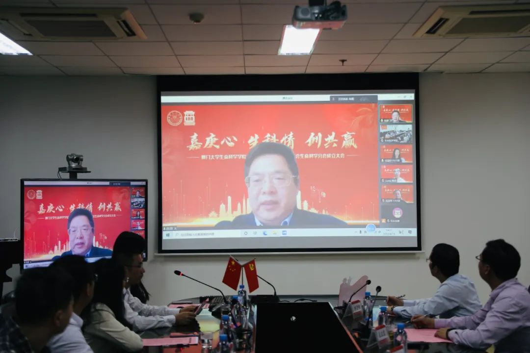 4月16日,厦门大学生命科学学院长三角院友会暨上海校友会生命科学分会成立大会以线上线下相结合的方式隆重举行。厦门大学副校长周大旺,厦门大学上海校友会理事长万建华、执行会长陈建,生命科学学院党委书记左正宏、副院长(主持工作)邓贤明、副院长郑世进、党委副书记葛学凤、张宇斌,厦门校友会生命科学分会会长翁师德、常务副会长宋思扬、秘书长彭振庆,福州校友会生命科学分会会长陈兵、秘书长程健,京津冀院友会会长林长青,粤港澳院友会秘书长朱子恒等嘉宾出席了此次大会,与长三角地区校友及线上收看直播的三千余位师生校友相聚“云端”,共同见证生命科学学院长三角院友会的成立。