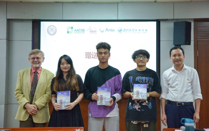 为鼓励管理学院少数民族困难学生勤奋学习、奋发上进,自2021年4月起,潘维廉教授已累计向厦门大学捐赠48万元设立助学基金,用于连续每年资助管理学院家庭经济困难的少数民族学生。活动中,赵晓慧首先为潘维廉颁发捐赠证书。随后,郑碧娇宣读助学金颁发决定,今年共有59名本科生、13名研究生获得该助学金资助。紧接着,潘维廉、郑碧娇共同为获助学生颁发助学金并赠送书籍《中国人中国梦——中国人的生活变迁与脱贫攻坚》,潘维廉、李峰共同为“石榴籽”少数民族学生骨干培训班学生赠送书籍。