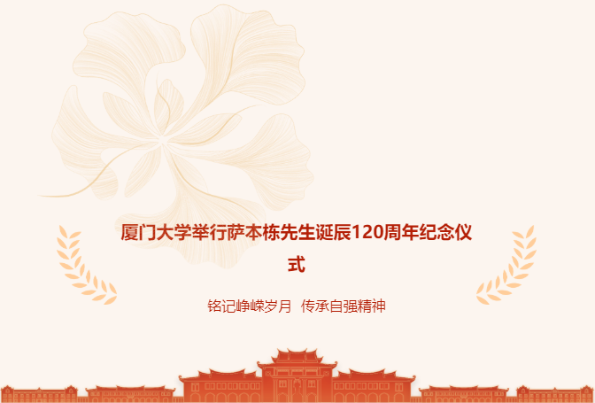 2022年7月24日是萨本栋先生诞辰120周年纪念日,厦门大学举办“铭记峥嵘岁月 传承自强精神”萨本栋先生诞辰120周年纪念仪式,深切缅怀这位著名的物理学家、电机工程专家和教育家。萨本栋先生也是厦门大学改国立后的第一任校长。