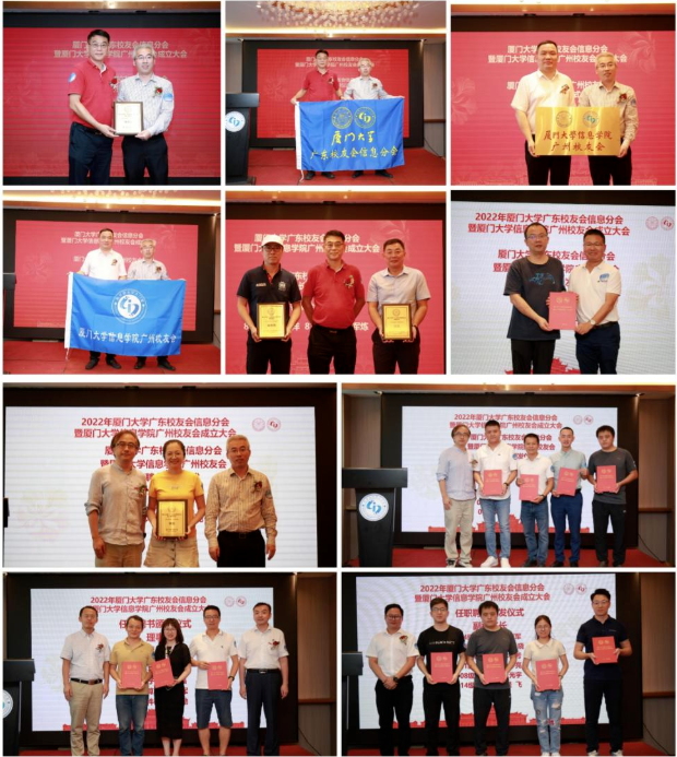 授牌授旗仪式上,黄国典、刘弢代表广东校友会与学校学院向许祥滨颁发会牌、会旗,黄国典向吴军炼、沈洋颁发名誉会长牌,高碧、刘向荣、孙海信、张仲楠等分别为监事长、副会长、秘书长、副秘书长、理事颁发聘书。