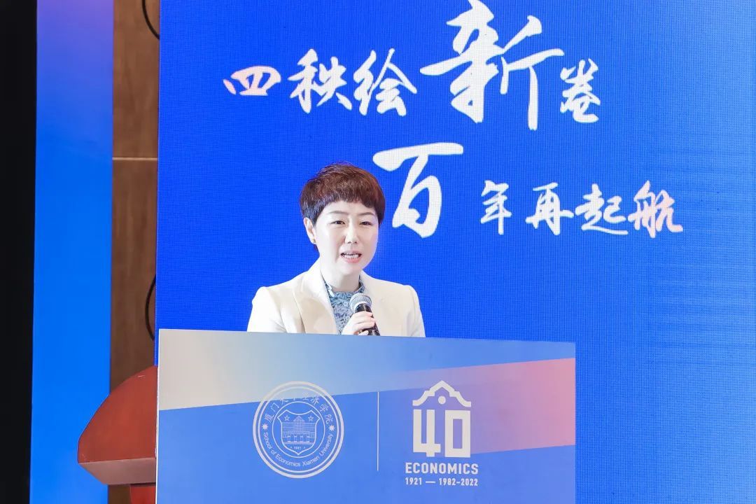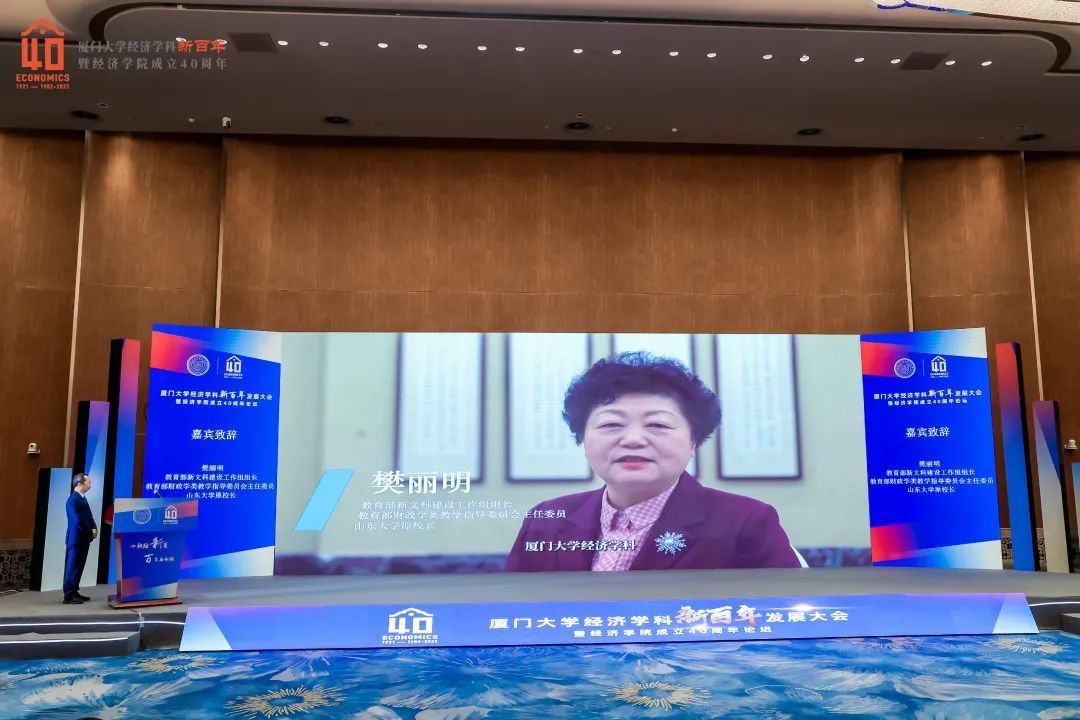 樊丽明作为厦大经济学科院友,在致辞中表示对母院成立40周年以来所取得的辉煌成就感到由衷的自豪,并给予深深祝福。她提到,厦门大学经济学科在新文科建设方面,立足中国大地,紧跟时代潮流,注重学科交叉,以国际化为推手,用国际语言讲述中国故事,推行国际化人才培养模式,人才培养取得新突破,科学研究紧跟国际潮流,在国外主流期刊发表一批影响较大的论文。学科深厚的学术积淀,重视基本理论研究的传统,理论联系实际的学风以及爱生如子的情怀,使其终生受益。祝福厦门大学经济学科在百年新征程中取得更加辉煌的成绩。