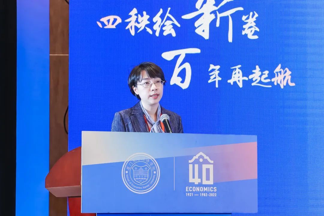 经济学院、王亚南经济研究院副院长(主持工作)周颖刚以题为《厦门大学经济学科建设与发展:回顾与展望》的报告,向现场来宾回顾了厦大经济学科百年征程,以及经济学院成立40周年来的办学成果,对学科发展进行总结与思考,表示将继续全面贯彻党的教育方针,落实立德树人根本任务,坚定努力建设中国特色、世界一流的经济学科的目标,积极推动传统优势学科深挖潜力,继续发展方法论学科彰显特色,大力培育新兴与交叉学科加快发展,进一步提升师资队伍整体层次,进一步提高行政技术团队的效率和协作,充分发挥经济学院、王亚南经济研究院和邹至庄经济研究院三位一体的优势,加强平台和智库建设,提升学科服务经济社会发展能力,成立厦门大学校友会经济分会,凝聚校友智慧和力量,开启学科新征程。