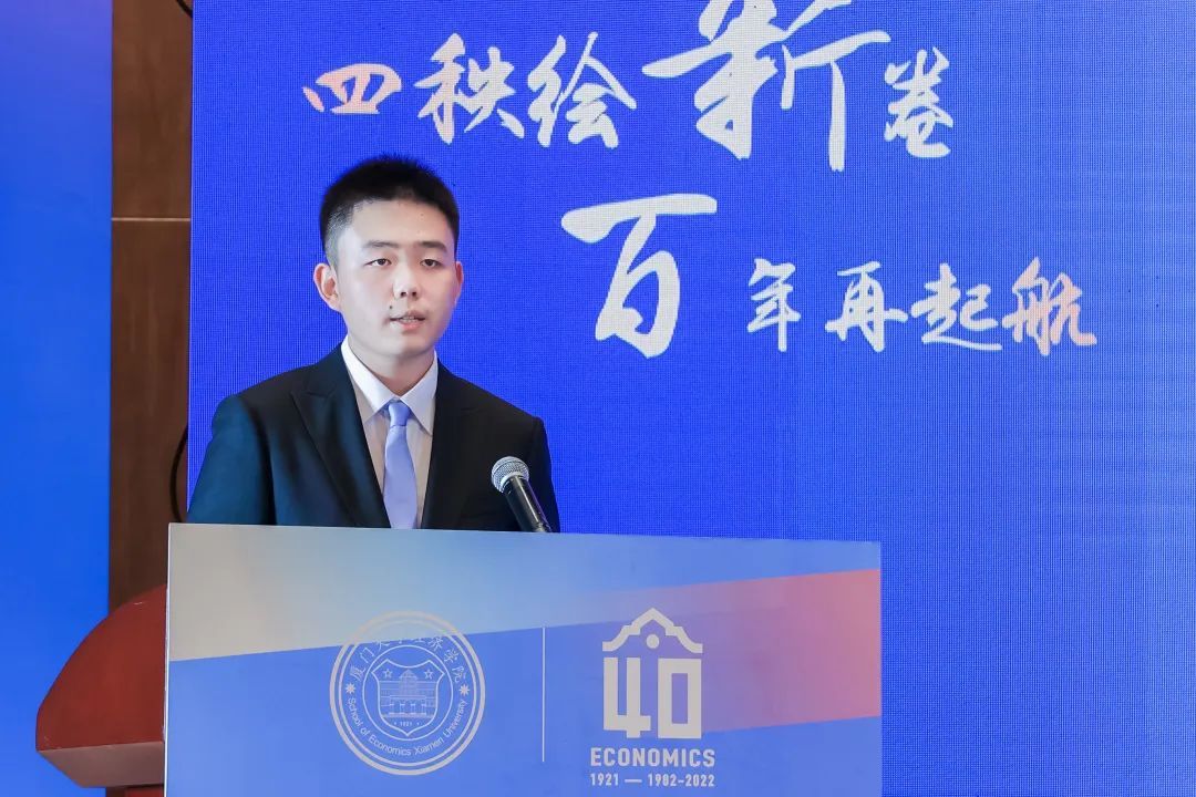 欣欣桃李苑,悠悠经济情,新百年的起点,优秀的厦大经济学子也为母校送上了祝福。中国社会科学院经济研究所教授、73级原经济系裴长洪,中国银行原行长、74级原财金系李礼辉,通联支付董事长、78级原财金系万建华,审计署原党组成员、中央经济责任审计办主任、十三届全国人大环境与资源保护委员会委员、79级原财金系张通,南京大学长江产业经济研究院院长、84届原计统系刘志彪,山东大学讲席教授、经济研究院院长、91级经研所黄少安,高毅资产董事长、首席执行官、92级原财金系邱国鹭,上海交通大学特聘教授、上海高级金融学院党委书记、93级原计统系朱启贵,西安诺亚国际英语培训学校创始校长、99级经济学系仇璐等通过在线视频、现场发言等方式为学科送上祝福,祝福厦门大学经济学科扬帆百年,祝贺经济学院成立四十周年,祝愿学科未来能够培养出更多的志存高远、脚踏实地的经世济邦之才。