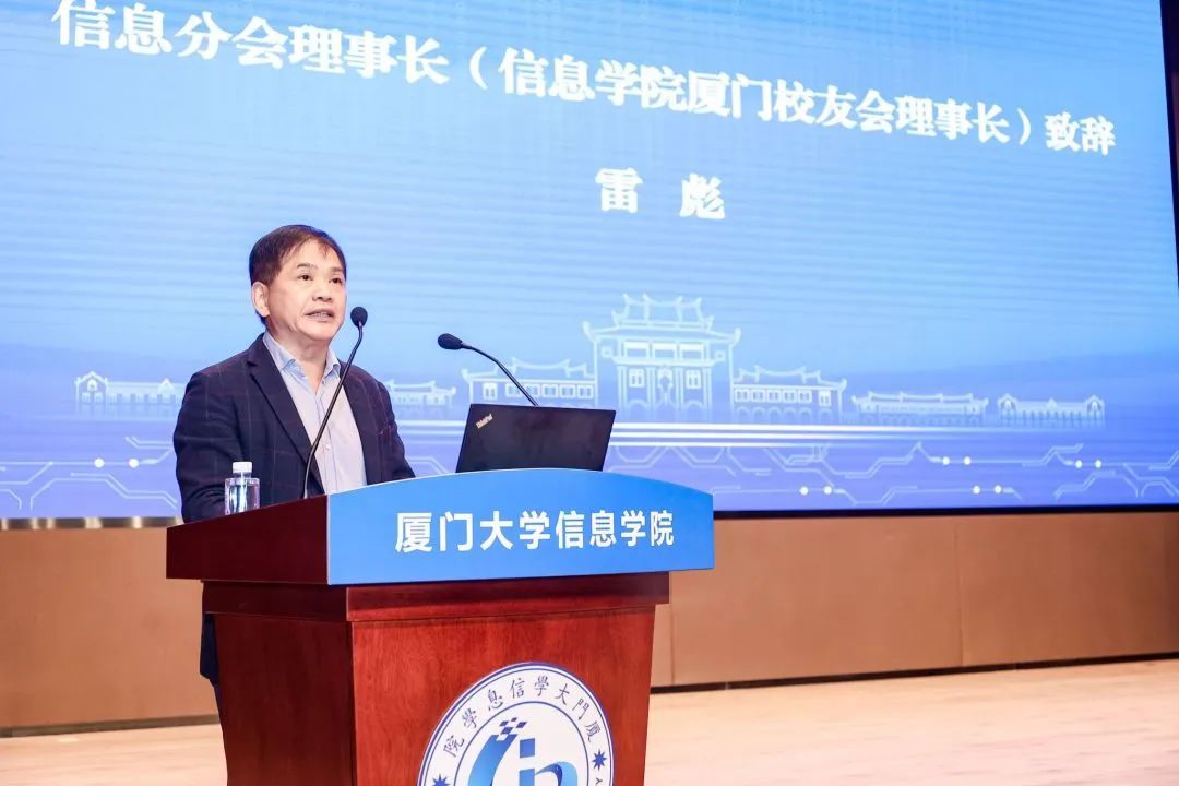 副校长、校友总会副理事长邱伟杰最后讲话。他表示,厦门大学一直高度重视,积极为信息学科建设发展创造良好环境,提供有力支撑。自2019年新的信息学院成立以来,信息学院全体员工不辱使命、不负众望、主动担当、奋发有为,为学校世界一流大学建设和我国信息信息科学发展作出了重要贡献。在新的历史起点上,希望信息学院认真学习贯彻落实党的二十大精神和习近平总书记致厦门大学建校100周年重要贺信精神,紧抓机遇、乘势而上,推动学院高质量发展,以一流学术成果和人才培养助力学校“双一流”建设。他强调,坚持以一流党建引领一流发展,深入推进学院综合改革。落实好立德树人根本任务,优化人才培养方案,提升育人水平。进一步凝练学科方向,按照工科办学规律,加强学科内涵建设。聚焦“四个面向”,加强原始创新,推动有组织的科研,全面提升服务区域发展和国家战略能力。增强引培汇聚青年人才能力,深化人事制度改革,推动分类考核,激发教师队伍活力,不断加强不断推动队伍建设上水平。优化学院运行机制,强化院系两级班子建设,提升履职尽责能力。