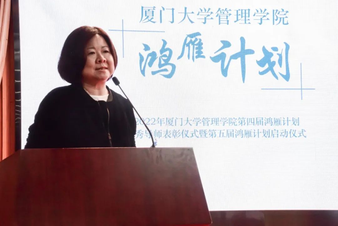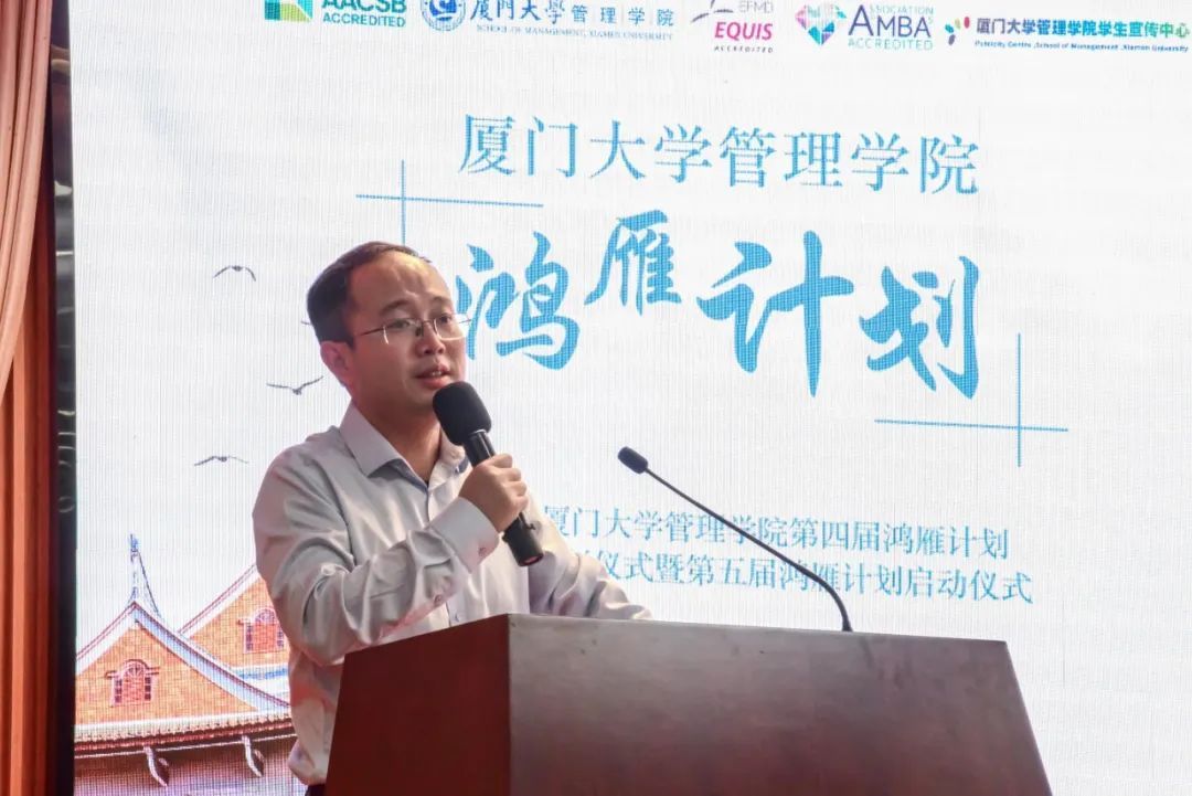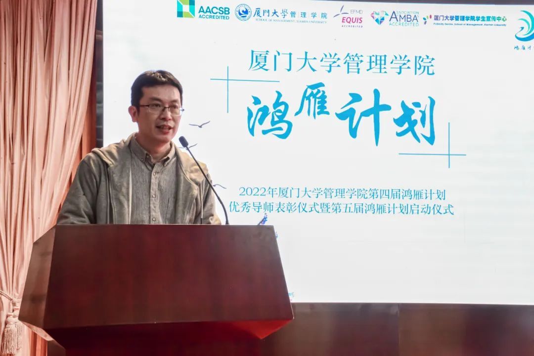 戴蓥简要回顾了之前四届鸿雁计划的历程,代表学院对第四届鸿雁导师们的付出表达了感谢,并对第五届鸿雁计划的前期筹备情况作了介绍。戴蓥表示,希望管理学院第五届鸿雁计划能够取得更多创新成果,“小雁子”们在优秀导师的带领下能够有更快成长、更大收获。