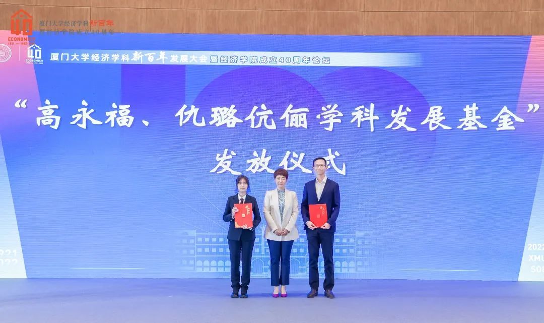 近日,在厦门大学经济学科迈向新百年暨厦门大学经济学院成立40周年之际,学院举行“邱华炳教育基金冠名岗位”授牌仪式、“高永福、仇璐伉俪学科发展基金”发放仪式。