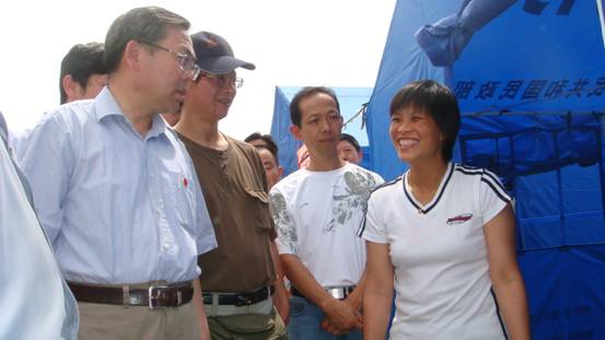 图1:国家卫生部领导到江油现场指导防疫工作(左2为王灵岚)。