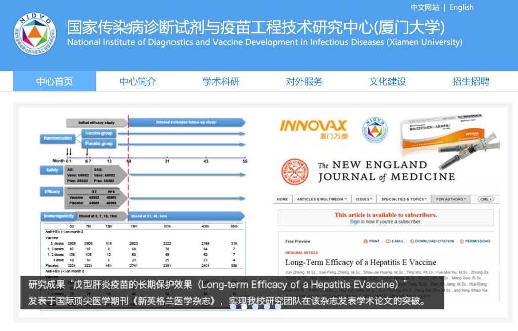 厦门大学国家传染病诊断试剂与疫苗工程技术研究中心耗费十几年研制的戊肝疫苗,不仅是世界第一个,也是目前唯一一个能够预防戊型肝炎的疫苗,已经在2012年在中国获批上市并开始使用。