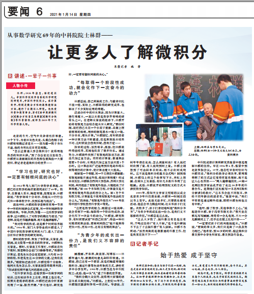 “一定要把孩子们的兴趣搞起来。”林群说,“要做的事太多,我们只是做了一点点努力而已。”他希望,到90岁的时候,能让微积分普及到中小学生和家长,普及到各行各业。