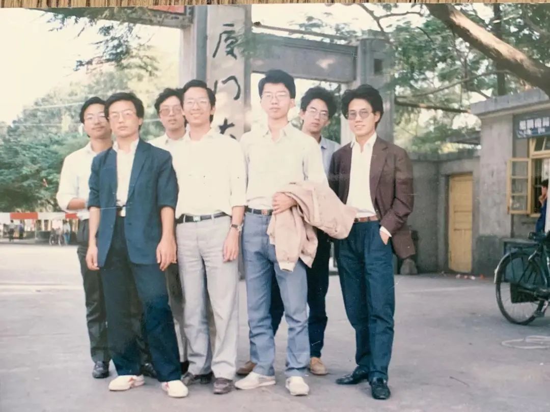 管理学社骨干成员在校门口留影(前排右一为李明庭)