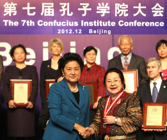 随着中国经济的飞速发展,综合国力的不断增强,世界各国对中国的关注日益提高,“汉语热”亦愈演愈烈。随着东盟经济一体化,中国—东盟自由贸易区的展开,东盟各国的汉语教学方兴未艾,曼谷地区以易三仓商业学院成立的孔子教堂引人注目,该孔子课堂的负责人则是活跃在泰国华文教育(下文简称“华教”)第一线,视汉语推广为毕生事业的卢瑷珊。卢瑷珊已年近七旬,在泰国从事汉语教学长达二十多年,几十年如一日,孜孜不倦,桃李芬芳,是活跃在泰华社会的社会活动家和沟通中泰两国人民友谊的“民间大使”,她让世界认识了中国,也让泰国走向了世界。