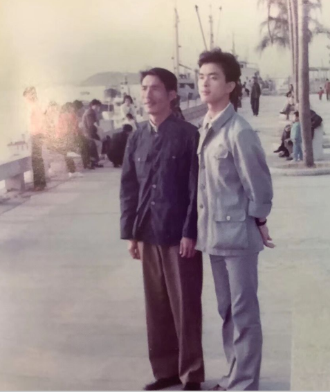 蓝伟光(右一)与高中化学老师谢天昌合影