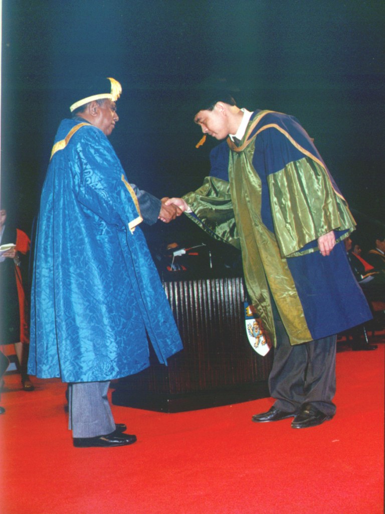 1995年,蓝伟光接受新加坡共和国总统纳丹授予博士学位证书并致谢