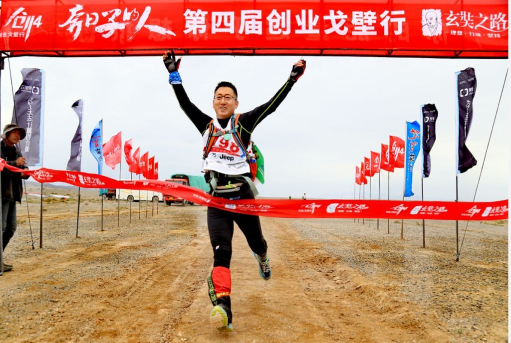 (于树军参加创业戈壁行活动,2015年摄于甘肃戈壁)