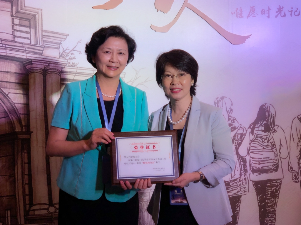中国驻澳使馆参赞牛文起、领事侯永峰为获得“南强励学金”的校友子女颁奖