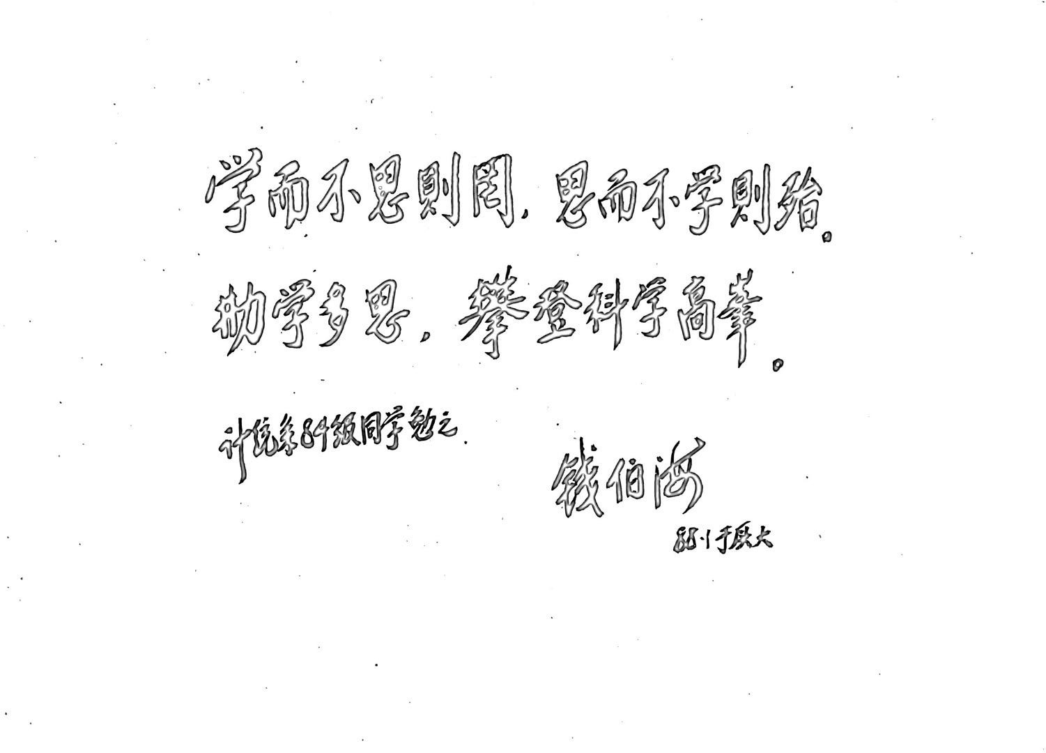 1988年钱伯海老师为厦大计统系84级同学题写的赠言