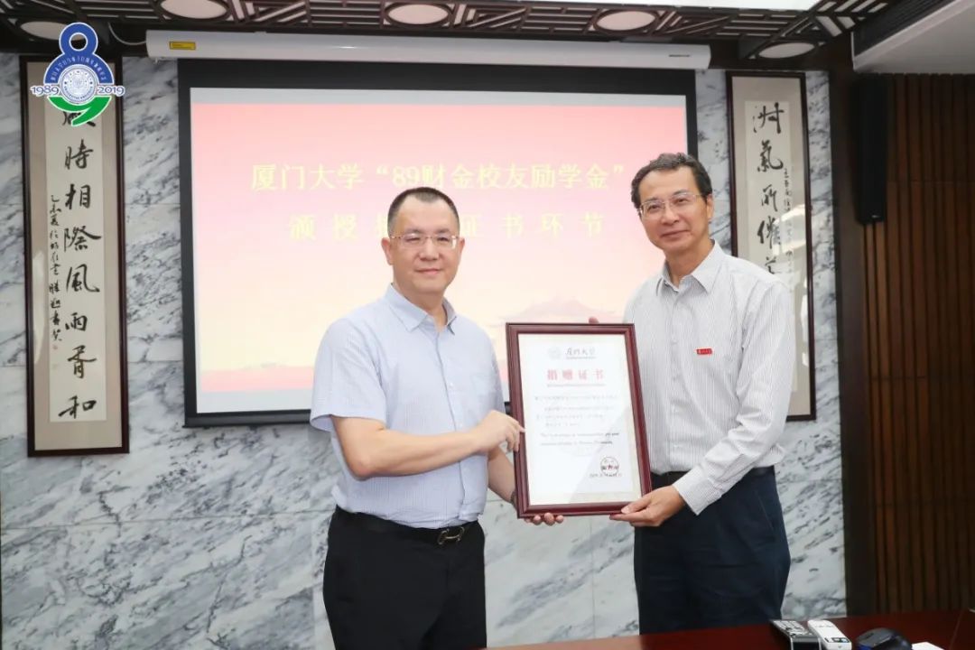 2019年10月25日,林海川代表1989级财金系向母校捐设“89财金校友励学金”