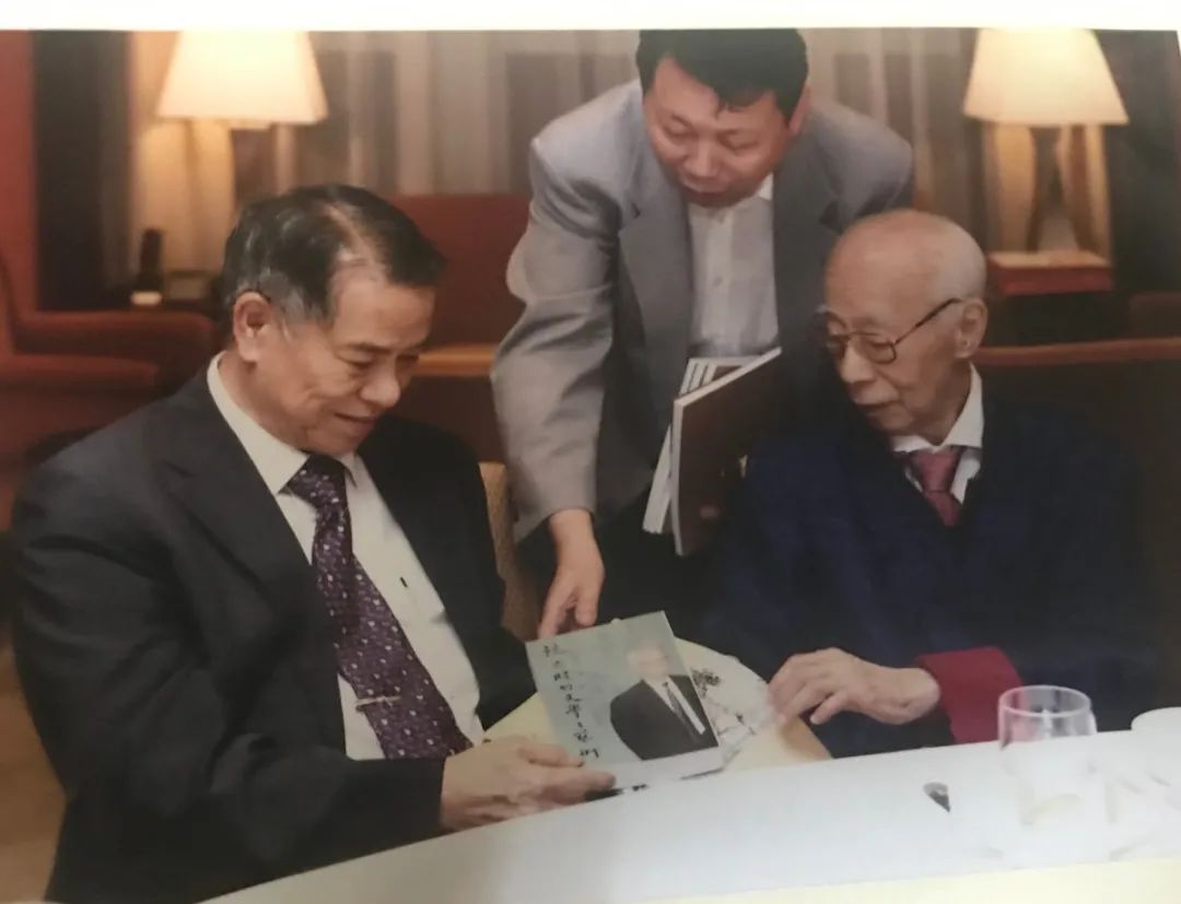 介绍菲华商界领袖陈永栽先生拜候我校名誉教授、国学硕儒饶宗颐教授(居中者为孙立川)