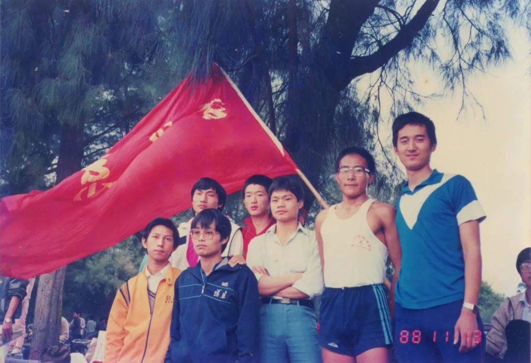 1988年崔维星(右二)参加校运会万米长跑后与同学合照
