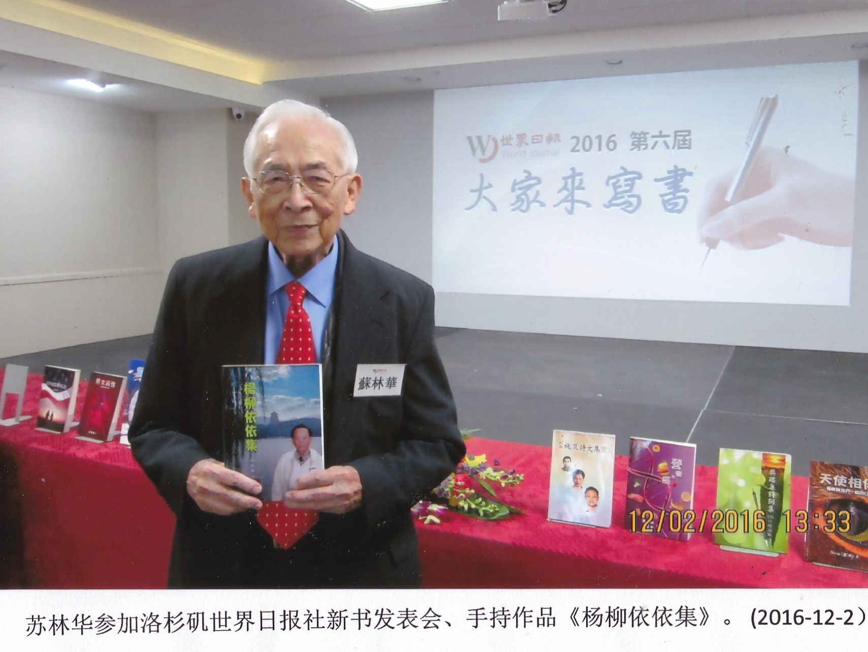 次日,世界日报以三大版面报道本届新书发表会,对我之 “作者简介“是: “ 苏林华----1927年福州出生。厦门大学机电系毕业,旋即进入台泥公司,开始59年水泥生涯,曾助巴拿马建厂、应聘菲国任厂长,1990年来美任总工程师及经理,1990年应聘泰国、为一大公司之资深副总经理兼廠长、主持建构现代化大水泥廠,成就斐然”。对我之 ”作品简介”则评介为:“九十高龄的作者,本身就是一部活的史书,少年时期的抗战岁月,壮年拼搏职场的海外见闻,以及个人水泥生涯的总回顾,颇值一观”。