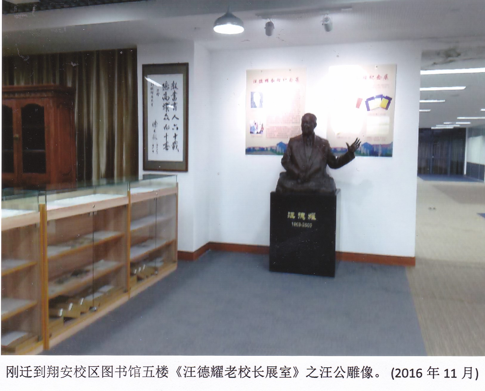 由于当时是在一教室内举行,地方窄、也不够永久性,故由王奋理事长代表我们向校方陈情迁移获准,十一月中搬到翔安校区图书馆五楼 < 汪德耀纪念展室》内。玆附搬迁首日照片,谅来他日还会添加一些装饰。