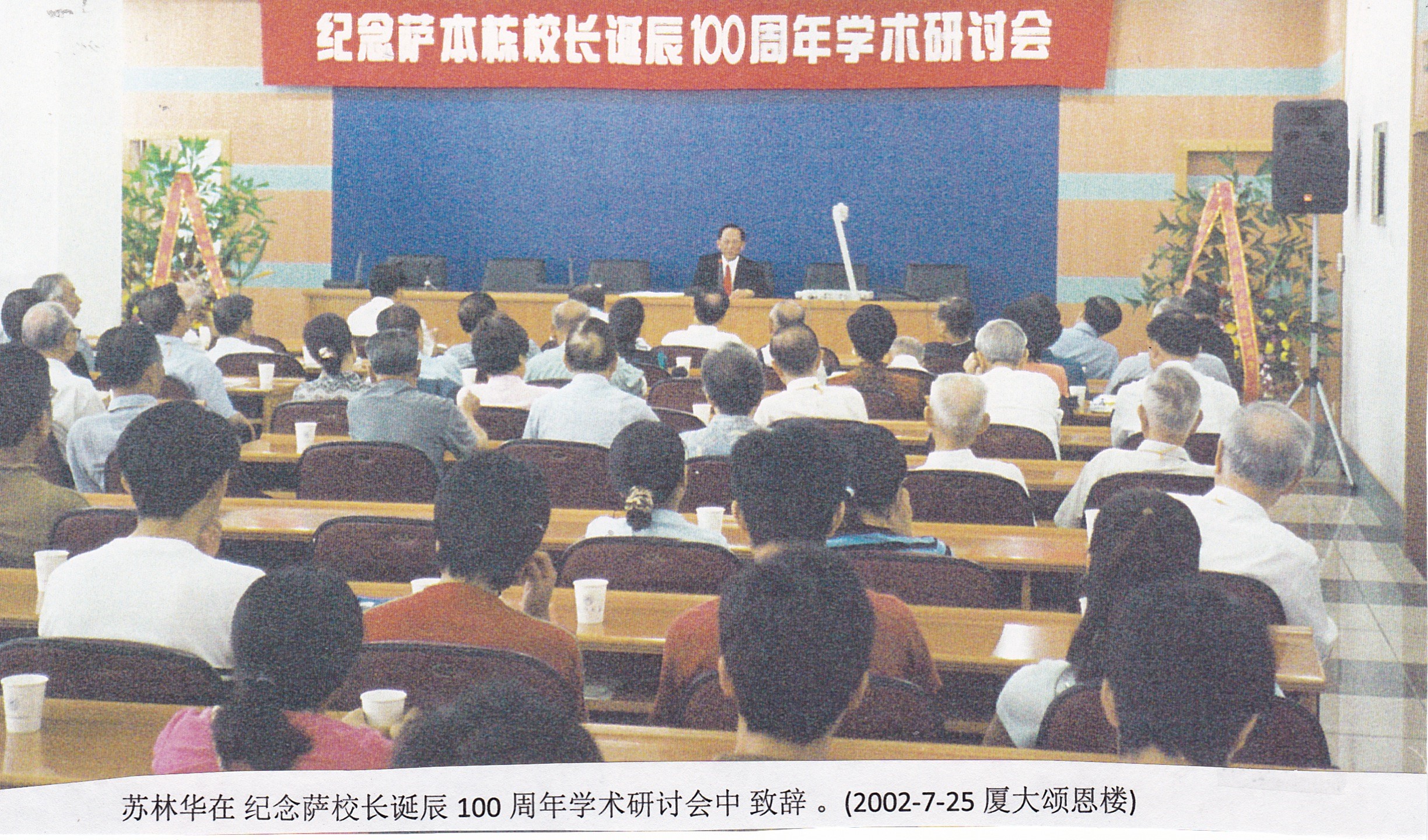 2002年7月25日为萨校长诞辰一百周年纪念日,經萨本栋教育科研基金会建议,校方为之举办学术研讨会。当天除萨二公子支唐博士以幻灯片示出萨公生平外,另由萨公弟子十余人致辞,都对萨公之学术成就及献身厦大精神而怀念他。我亦不例外,但特别加上一段众所未知之事如下;