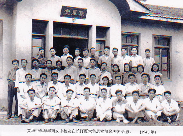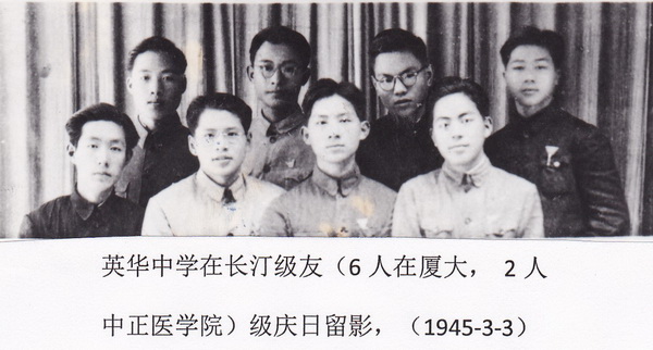 由于日军在南太平洋战事失利,且兵力不足,无力攻长汀,1945年1月我们顺利期考;中正医学院复课,学生们多搬到厦大宿舍内住,我们英华在该校的级友陈大镛和熊重廉就搬到我们博爱斋九号房内。1945年初我们找摄影师在博爱斋大门前拍照,3月3日我们“群生级”级庆,八位级友又到市区照相馆合影,这些都是抗战期间难得的纪念品。