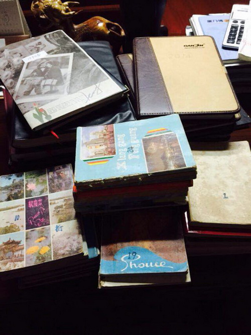 不仅是微信。从1980年1月1日起,到今天为止,35年来,我坚持天天写日记,少有中断,用过的日记本(图1-4)堆起来也有一米多厚。现在要让我说出某年某月某日在做什么,我一查就可以知道。当年在校园、在工作之余所写的日记、随笔、见闻和经历,既是我练笔、“笨鸟多飞”之举,也可以在合适的书刊里拿出来晒晒,以解我“长大后当作家”的儿时梦。这也是坚持写日记的好处。可以说,写日记和写微信一样,已经成为我的生活习惯,已经成为一座风景秀丽、花繁叶茂的“我的精神家园”了,我会在这个“家园”里一直耕耘、灌溉下去,不休、不止。望和所有的朋友们共勉。