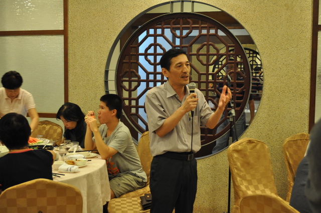 “意外的惊喜”总是中文系人的“最爱”,刚毅兄又一次诠释了这个生动的“文学定律”。10月4日晚,当7901聚会晚宴进行了近一个小时,杨总监急匆匆地赶到了,他的“惊艳现身”立时博得了同学们的热烈掌声。于是,主持人林丹娅乘势将他推上场发表感言。