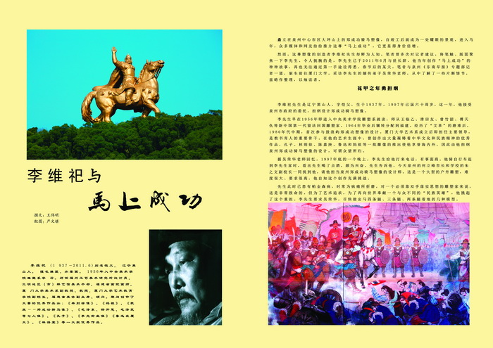 然而,这尊塑像的创造者李维祀先生却鲜为人知。笔者曾多次对记者建议,将笔触、版面聚焦一下李先生。令人扼腕的是,李先生已于2011年6月与世长辞,他当年创作“马上成功”的种种故事,再也无法通过第一手途径得悉。春节后的某天,笔者与泉州《东南早报》专题部记者一道,驱车前往厦门大学,采访李先生的嫡传弟子吴荣华老师,从中了解了一些片断情节,兹略作整理,以飨读者。