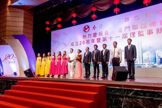 庆祝香港厦门联谊总会成立20周年暨第十一届理监事就职典礼顺利举行,取得圆满成功,这不仅仅是因为香港厦门联谊总会同仁们的共同努力,也有许多厦大人直接或间接付出的努力。特别是方平、吴晋明、薛林、邹慧泓、畲英妮、施雅玲、陈建国、郑小衍、林炳江、王着恒、李国强、孙建华、陈丝丝、林春燕、林超及十位礼仪小姐和参加大合唱的校友们,还有本次亲临现场共襄盛举的蔡丽影、王春新、林贡钦等名誉理事长、校友和亲友们,借此机会向你们表示衷心的感谢!
