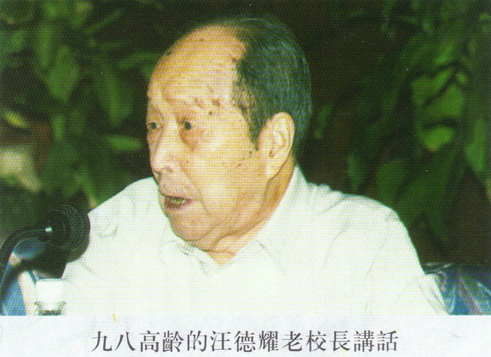 参加1948级庆典时之汪老校长看来身体十分健朗,不意两年后他竟然于20001012病逝,痛哉!——距190328出生日算来,他实足978个月,但照中国人算法应是百岁寿星。