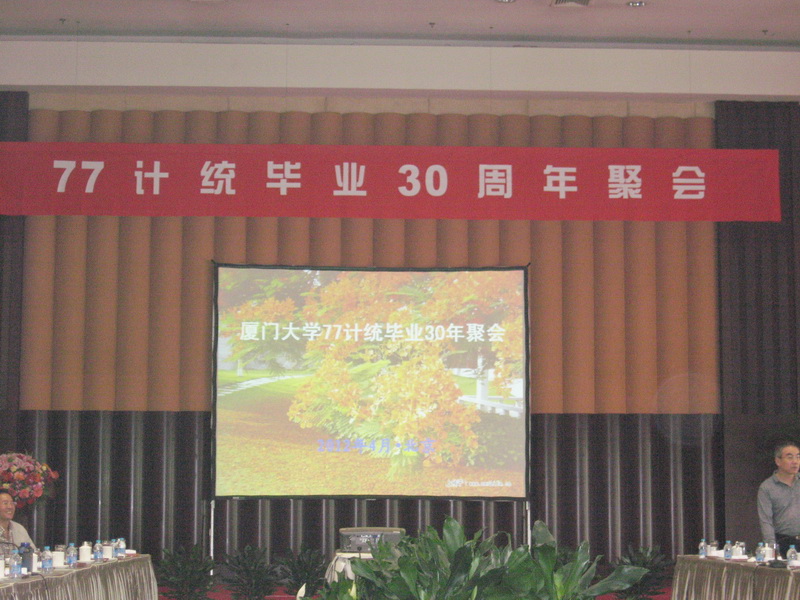 三位暂缺席的同学。据悉,远居美国的幸福奶奶陈心音,曾想通过视像联线,间接出席聚会活动,虽然没有成功,但同学们都心领了。张子安在加拿大,与北京时差十多小时,白天黑夜,晨昏颠倒,却想方设法通过视像联线,并再三嘱咐她先生,到时间一定叫醒她,千万不要错过与同学们“见面”的良机。心诚则灵,成功了!透过屏幕,大家看到子安一副笑容可掬,十分想念同学们的样子。现场的同学们在叶文振主持的引领下,情不自禁且异口同声地喊出:“子安你好!我们想念你!”那晚对子安而言,一定是今夜无眠、难忘今宵。李文溥同学因故未能出席,无意中成了同学们的热点话题,不管同学们如何议论和猜测,本意都是好的,都在思念这位久违了的老同学,相信他的心也是和同学们相连,因为他是77级计统班不可或缺的才子。
