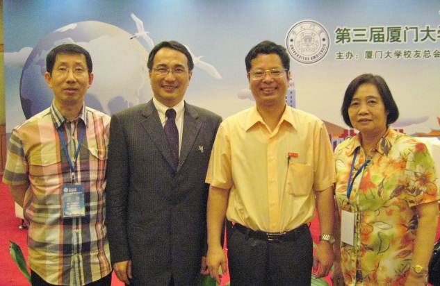 27日下午,会议议程进入《文化、经济高峰论坛》。 出席论坛嘉宾有负责《校友工作与文化传承》演讲的中文系朱水涌教授、中山大学党委陈春声副书记、副校长(厦大历史系博士)等。印象最深刻的是,朱水涌教授在《厦大文化传统漫谈》中,回顾了校主陈嘉庚在厦大建校初期,只有20个老师、98个学生时,就早已经规划好今后厦大发展和建筑模式、规模的一段校园发展历史。校主的高瞻远瞩和真知灼见令后人钦佩。陈春声副书记在《1986—1989的芙蓉园:一个历史学者的历史记忆》演讲中,引用1986—1989年,他在厦大历史系就读博士期间的校园照片为历史背景,论述厦大校园文化的历史演变。最后他还谦恭地表示:厦大可以把他这样一个不怎么样的区区之辈,培养成一个人才。真要感恩母校!两位教授幽默风趣的演讲,妙语如珠,谈笑风生,使在场的校友们在轻松愉快的气纷中,加深了对厦大文化和校园历史的认识。