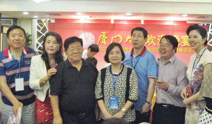 专程莅临大会的厦门大学党委杨振斌书记,与到会的许多校友会负责人是首次见面。杨振斌书记1963年10月出生,清华大学系统工程专业硕士研究生毕业,曾任清华大学党委副书记,教育部思想政治工作司司长,2012年4月13日正式调任厦门大学党委书记。他给我们的印象是年轻有为、温文儒雅、谦逊和蔼,不愧是“清华王子”。他和厦门大学原党委书记、现任复旦大学党委书记朱之文一样,十分有亲和力,非常尊重老学长,与大家虽是初次见面,却一见如故,给人亲切感。欢迎晚宴期间,他不厌其烦耐心地担任校友们合影的“模特儿”,与大家轮番合影;或是亲临各席向校友们嘘寒问暖,把酒言欢。直至晚宴即将结束,才发现酒风良好、酒量合格的他,却对不起自己的肚子,没顾得吃上几口饭菜。