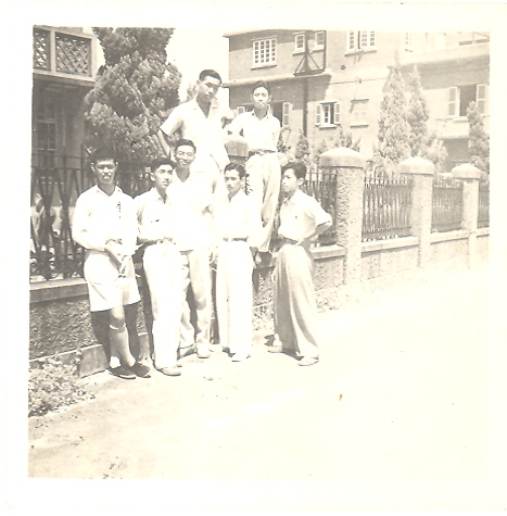 摄于1949年5月,在鼓浪屿厦大新生院男生宿舍的一侧。右起第三人为周景茂,左起第三人为作者,其余均为垦荒社同仁。