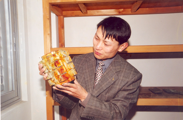 2001年2月10日,在金沙遗址发现的第三天,出土了一件商周时期最大的玉琮,兴奋地与玉琮合影留念